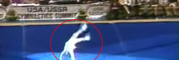 Though comedy and gymnastics routines aren’t commonly associated with each other, this video proves that there’s a way to combine the two effectively. Paul Hunt, under the stage name “Paulette Huntsinova,” enchants everyone at the 1988 USA-USSR display in Los Angeles with his unconventional performance. He dons a women’s