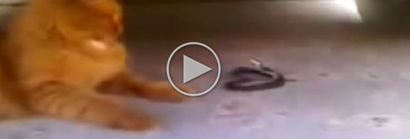 Advertisement We were recording out cat playing outside when a small snake came up to her and started trying to bite her. The snake was harmless, and our cat didn’t seem scared, so we kept filming, and what we saw was pretty amazing! Our cat was able to control