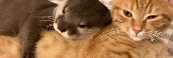 There are many videos on the Internet where you can observe unusual friendships with animals. This video is about a Japanese owner filming a special bond between an otter and a cat. Sakura, a pet, has garnered a lot of attention for her good looks. This time, the owner