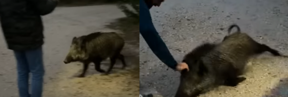 Recently, a video appeared on YouTube where you can see an unusual scene from France. There, a group of fishermen noticed a wild boar, which was not at all afraid of their presence. On the contrary, he asked them to pamper him. The video, which has been posted on